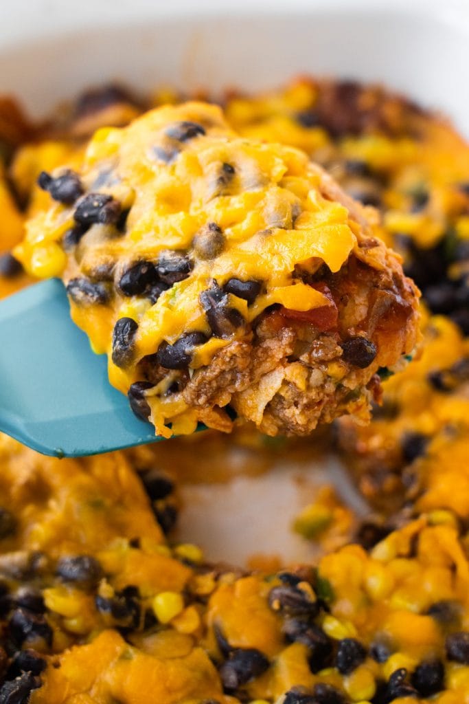Is there anything better than a bubbly, cheesy layer of beef, beans, and corn?